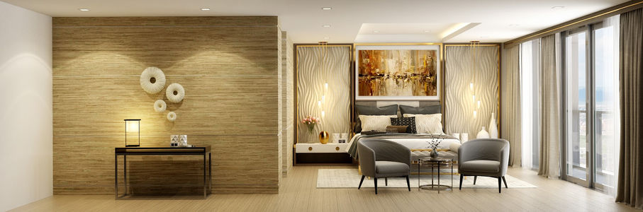 The design concept blends contemporary finishes with refined furniture and artful accessories. Every surface and texture was chosen to evoke understated grandeur - “gray-ge” walls balancing the coolness of gray and the warmth of beige, complemented by two-tone wood finishes, glossy laminates, and subtle glass details. The palette feels calm yet commanding, clean yet indulgent.